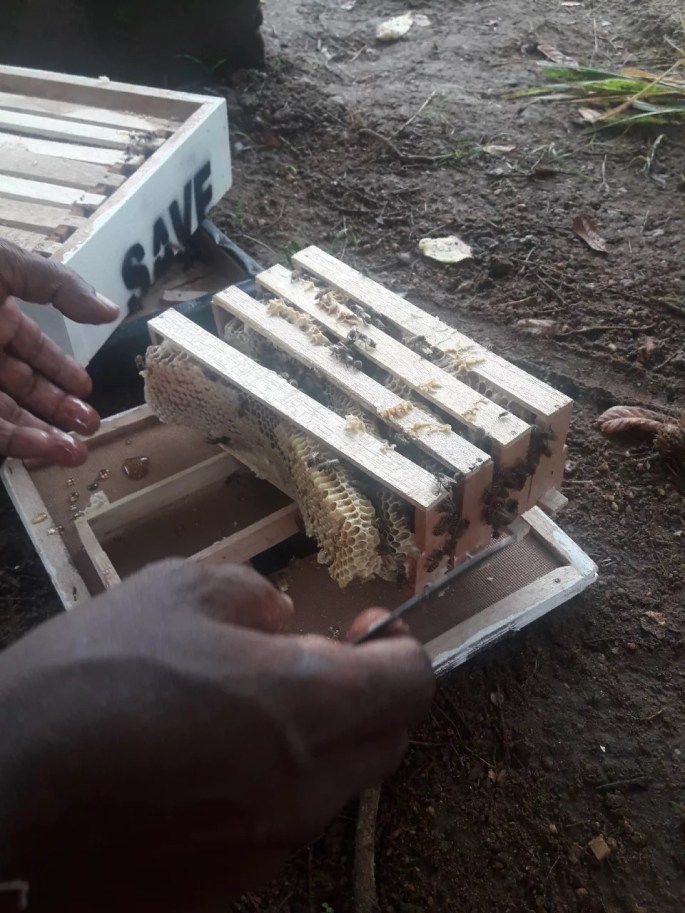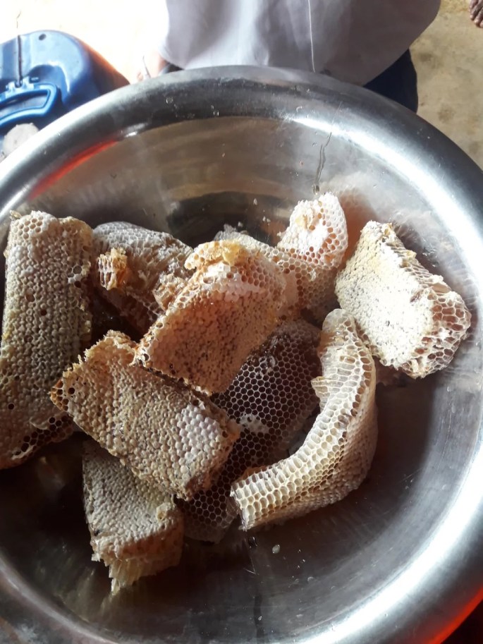 Early this year we have introduced some bee colonies marking the beginning of the Beehive farming project. These are some pictures of our first Beehive harvest. Plans are now under way to extend the number of bee hives in the village with the aid of our kind donors.