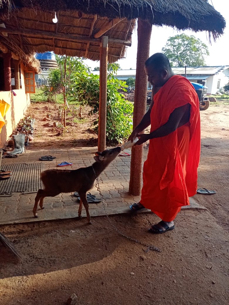 Ven. Somananda feeding ‘Sudu’ after her rescue.
